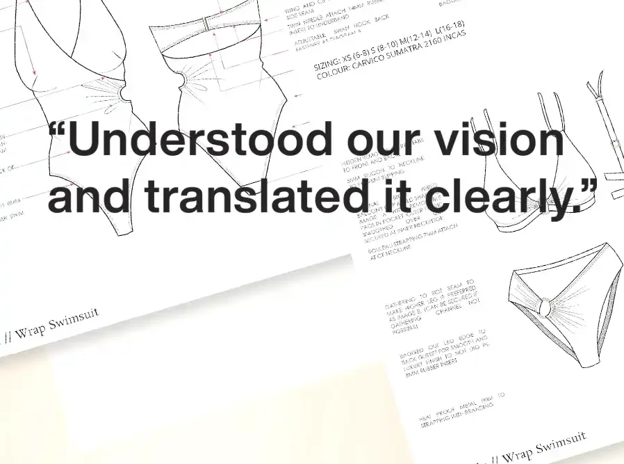 Avoid amateur and costly mistakes. With 16 years’ experience in intimates, swimwear, lounge, athleisure, womens and kidswear we understand garments.